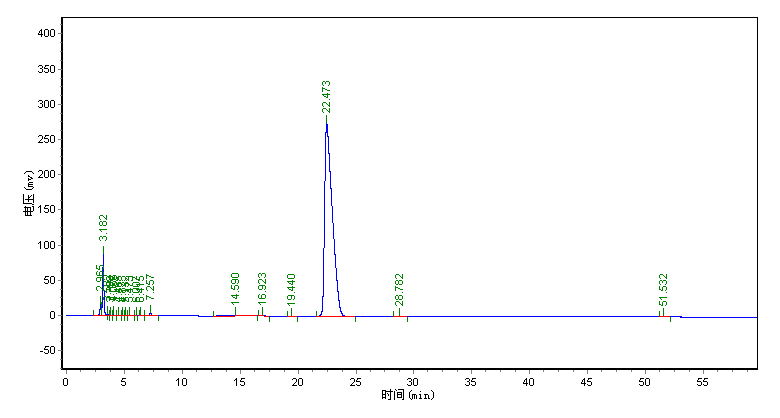 取本品50mg,置50ml容量瓶中,加流動相溶解并稀釋至刻度,超聲,抽濾,作為供試品;精密量取1ml,置100ml容量瓶,用流動相稀釋至刻度,超聲,抽濾,作為對照品。抽取20μl注入液相色譜儀。