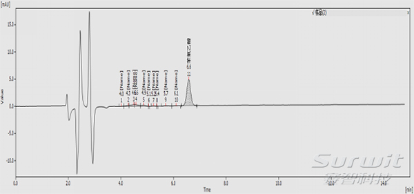 取標(biāo)準(zhǔn)儲(chǔ)備液適量,加甲醇制成濃度為:100mg/L,250mg/L及500mg/L標(biāo)準(zhǔn)系列溶液。