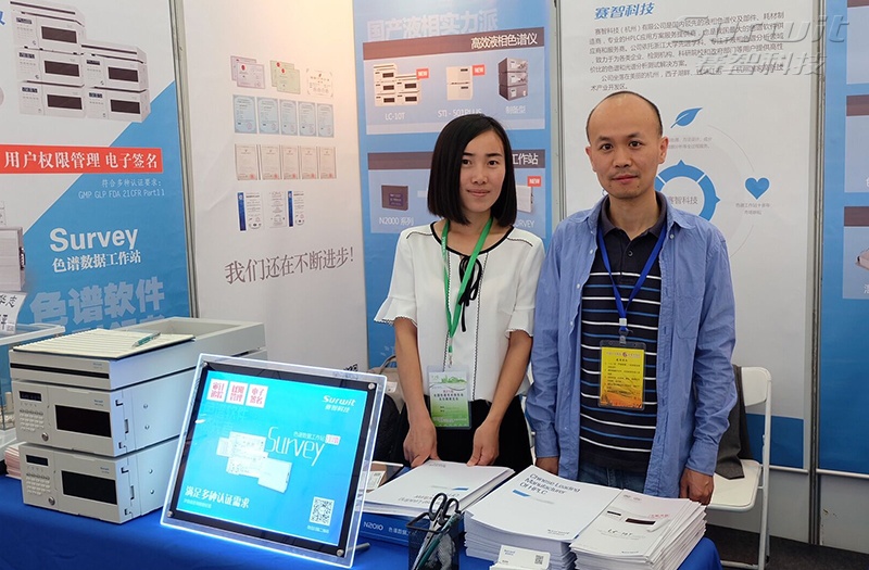 本次會議的展品:新版LC-10T高效液相色譜儀,與舊款相比更加美觀實用。具有審計追蹤功能的Survey工作站軟件,符合GMP認證要求。