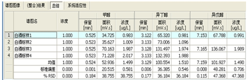 若同時打開多張譜圖,自動計算給定組分的均值,相對偏差及%RSD值。